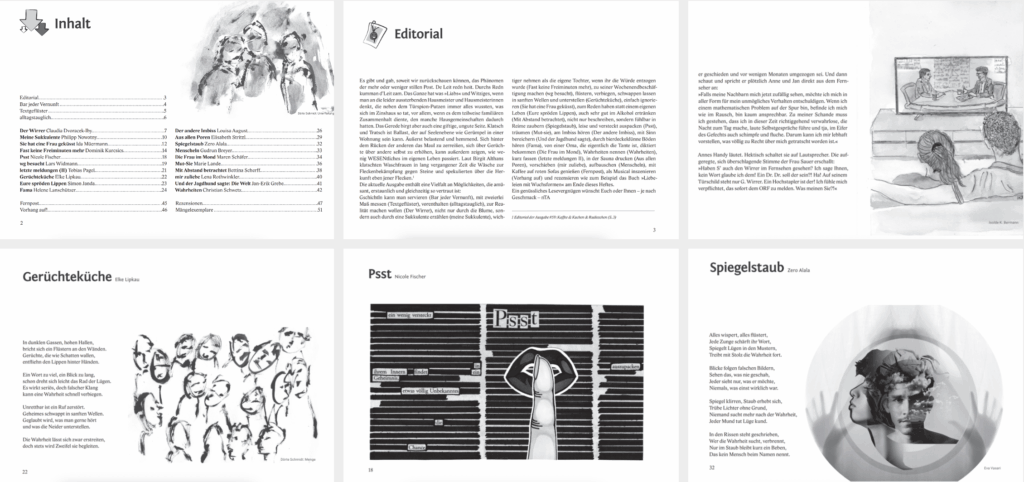 Beide Literaturzeitschriften werden nach wie vor von mir gesetzt; außerdem betreue ich auch die Websites.